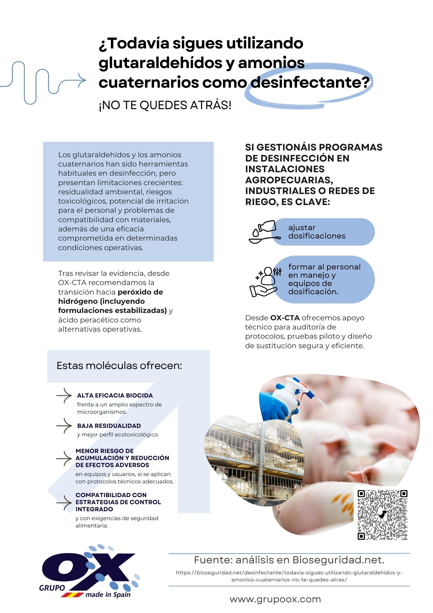 OX-CTA recomienda la transición hacia tecnologías de desinfección más eficaces, sostenibles y seguras para el personal y los equipos, frente a las limitaciones de los desinfectantes tradicionales.